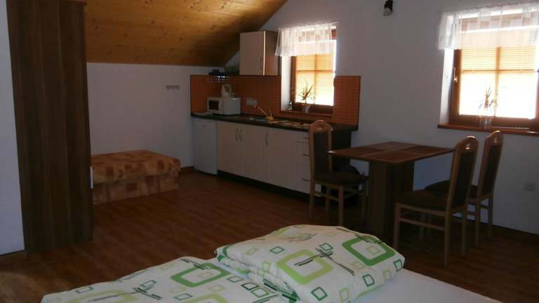 Die voll ausgestattete Küche im Apartmán Pohoda ermöglicht die Zubereitung eigener Mahlzeiten. Ausserdem stehen Grillmöglichkeiten zur Verfügung, um gemütliche Grillabende im Garten zu verbringen.