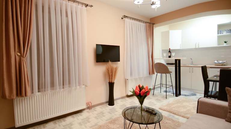 Das Apartment im Apartman Savić verfügt über ein gemütliches Schlafzimmer, in dem Sie nach einem ereignisreichen Tag entspannen können. Das Wohnzimmer ist mit einem Flachbild-Kabel-TV ausgestattet und bietet Ihnen Unterhaltungsmöglichkeiten. Die voll ausgestattete Küche ermöglicht es Ihnen, Ihre eigenen Mahlzeiten zuzubereiten und den Komfort eines eigenen Zuhauses zu genießen. Das Badezimmer verfügt über eine Dusche und Handtücher sowie Bettwäsche werden gestellt, um Ihren Aufenthalt angenehm zu gestalten.