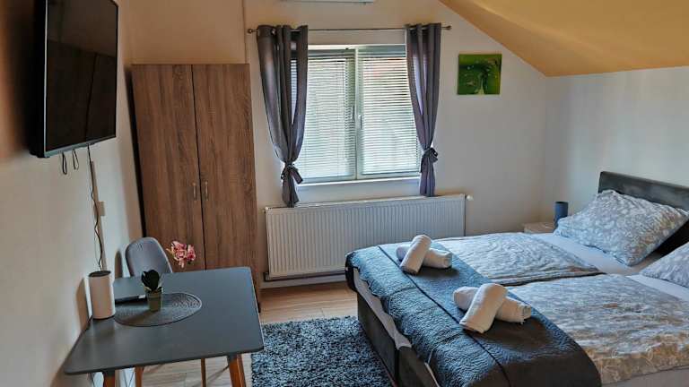 Apartman - sobe Corina-blizu Osijeka ist eine Nichtraucherunterkunft, die 2006 erbaut wurde. Sie bietet einen Garten, kostenloses Wifi sowie kostenlose Parkiermöglichkeiten für Gäste, die mit dem Auto anreisen. Die Unterkunft verfügt über einen Kinderspielplatz und ist familienfreundlich. Die Mindestalter für den Check-in ist 18 Jahre, und Haustiere sind nicht gestattet.
