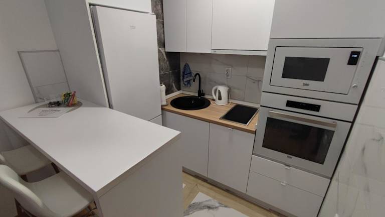 Die Ferienwohnung besteht aus einem Schlafzimmer und einem Wohnzimmer. Eine voll ausgestattete Küche mit Kühlschrank und Wasserkocher ist vorhanden, zudem bietet das Badezimmer eine Dusche sowie kostenlose Pflegeprodukte. Handtücher und Bettwäsche werden bereitgestellt, um den Gästen ein angenehmes Erlebnis zu bieten.