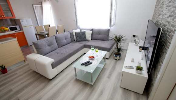 Apartman Toni bietet eine geräumige Ferienwohnung mit Klimaanlage, die über Stadtblick und die Bequemlichkeit einer Terrasse und eines Balkons verfügt. Die Unterkunft hat sowohl einen Meerblick als auch einen Blick auf die umliegenden Berge. Ein kostenloser Privatparkplatz und kostenloses WLAN sind ebenfalls vorhanden. Ein Wasserpark steht den Gästen zur Verfügung.