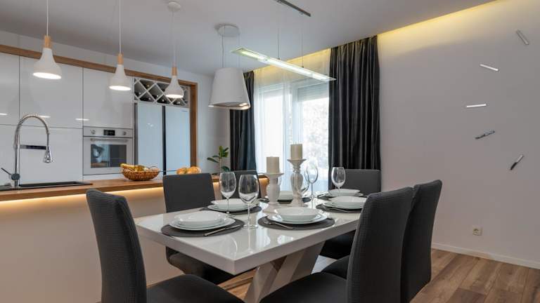 Das klimatisierte Apartment im Apartman Tragos bietet Ihnen 2 Schlafzimmer, einen Flachbild-Sat-TV, einen Essbereich, eine voll ausgestattete Küche mit Kühlschrank und ein gemütliches Wohnzimmer. Genießen Sie den Komfort eines eigenen Balkons und nutzen Sie die Kaffeemaschine, um sich eine Tasse Kaffee zuzubereiten. Handtücher und Bettwäsche werden Ihnen im Apartment zur Verfügung gestellt, sodass Sie sich um nichts kümmern müssen.