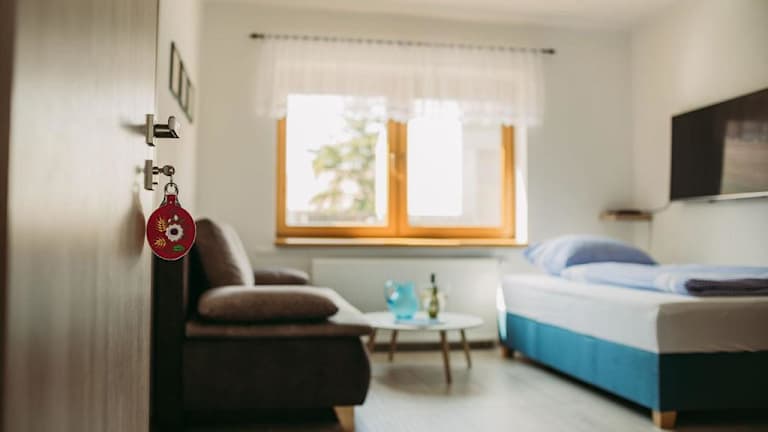 In der Umgebung des Apartments können Sie wunderbar wandern und die Schönheit der Natur genießen. Entdecken Sie die Gegend und besuchen Sie Sehenswürdigkeiten wie das Minaret oder das Schloss Jan, die beide in der Nähe liegen. Der Flughafen Brünn ist etwa 52 km entfernt und bietet eine gute Anbindung an das Apartment.