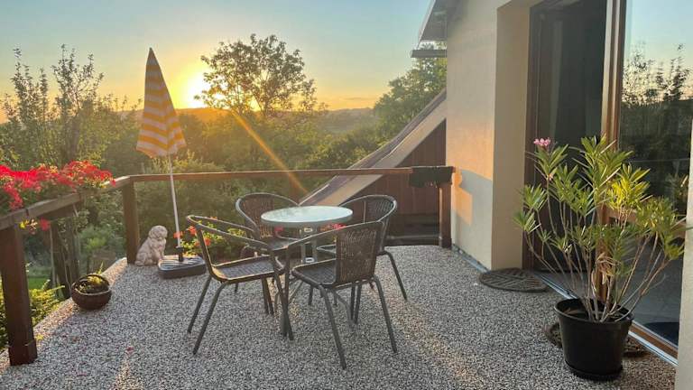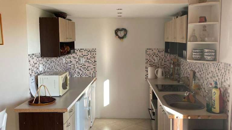 Die Ferienwohnung beinhaltet ein Schlafzimmer, eine Küchenzeile mit Kühlschrank und Geschirrspüler sowie ein Badezimmer mit Bidet und Badewanne oder Dusche. Handtücher und Bettwäsche werden bereitgestellt.