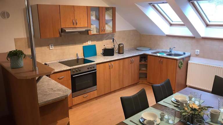 Apartmán v podkroví ist eine Ferienwohnung mit 1 Schlafzimmer, die in einem heimeligen Ambiente eingerichtet ist. Die Unterkunft wird von einem privaten Gastgeber geführt und bietet eine Nichtraucherumgebung.