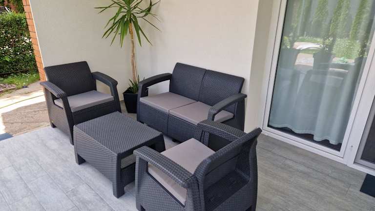 Die Ferienwohnung umfasst 1 Schlafzimmer und 1 Badezimmer sowie eine voll ausgestattete Küche. Bei der Ausstattung gehören Bettwäsche, Handtücher, ein Flachbild-TV mit Satellitenkanälen und eine Terrasse mit Gartenblick.