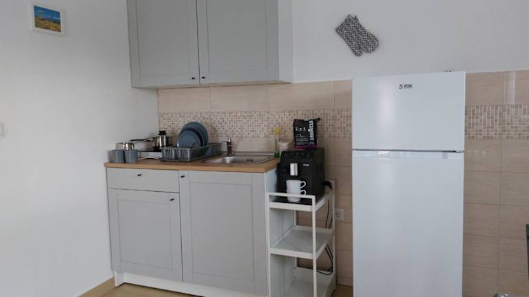 Die Unterkunft Apartmani Dejan bietet verschiedene Wohneinheiten, die jeweils über einen Balkon mit Gartenblick verfügen. Jede Einheit umfasst einen Sitzbereich, einen Flachbild-TV, eine voll ausgestattete Küche mit Kühlschrank und Herdplatte sowie ein eigenes Badezimmer mit Dusche und kostenlosen Pflegeprodukten.