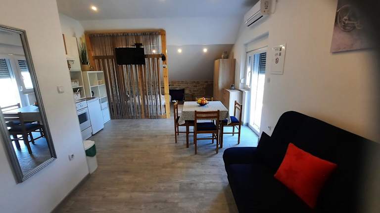Apartmani Goga bietet eine Ferienwohnung mit einem einladenden Garten, einer Sonnenterrasse und einem Restaurant, in dem die Gäste eine Auswahl an Gerichten geniessen können. Die Unterkunft bietet kostenfreies WLAN und einen kostenlosen Privatparkplatz. Sie ist ideal für Gäste, die eine ruhige und erholsame Umgebung suchen.