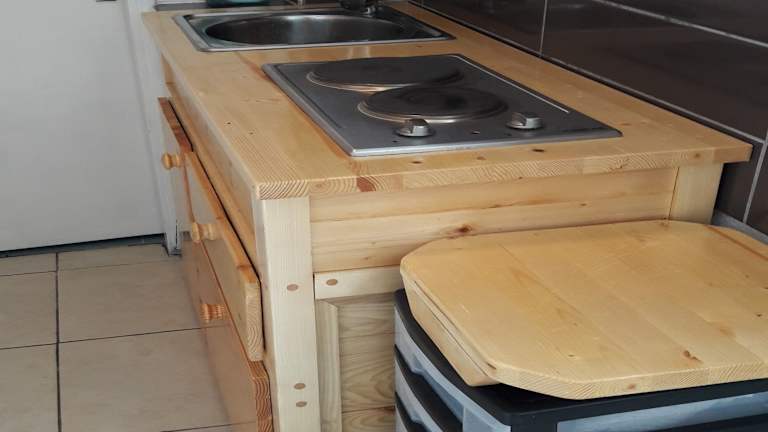 In jeder Wohneinheit befindet sich eine voll ausgestattete Küche mit einem Esstisch. Es gibt die Option, Essenslieferungen in die Unterkunft zu organisieren.