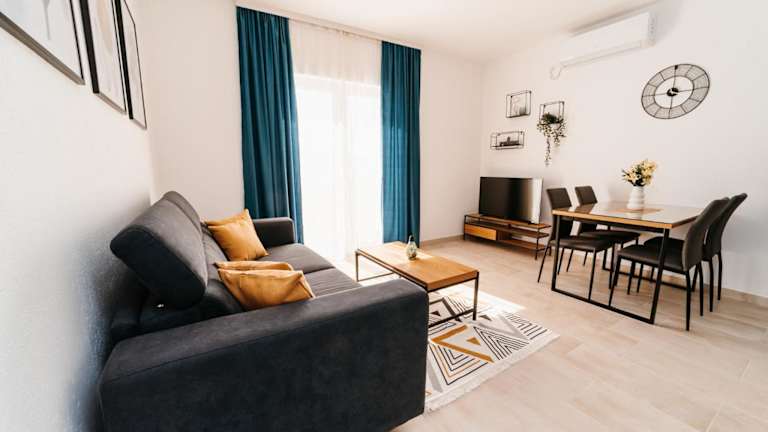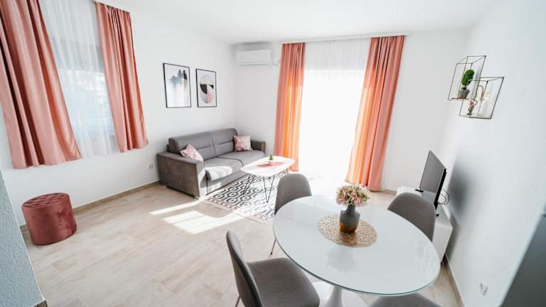 Die Wohneinheiten im Apartmani Komarna sind modern eingerichtet und beinhalten einen Balkon, einen Sitzbereich sowie einen Satelliten-Flachbild-TV. Jede Wohneinheit besitzt eine voll ausgestattete Küche mit Kühlschrank und Ofen und ein eigenes Badezimmer mit Dusche und kostenlosen Pflegeprodukten.