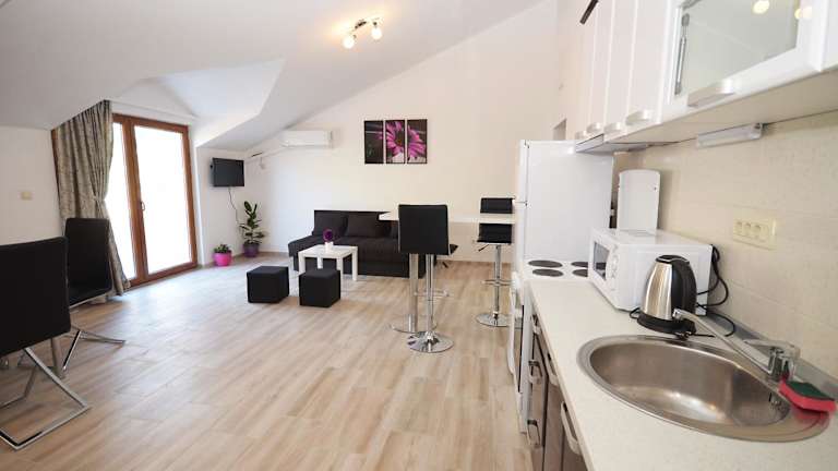 Apartmani Mizdrak bietet Übernachtungsmöglichkeiten in einem einladenden Ambiente. Die Ferienunterkunft verfügt über einen Garten mit Grillmöglichkeiten sowie eine Terrasse mit Stadtblick. Auch ein Parkplatz ist vorhanden. Die Unterkunft besteht aus mehreren Wohneinheiten, die alle mit einem Balkon mit Blick auf die Berge ausgestattet sind.