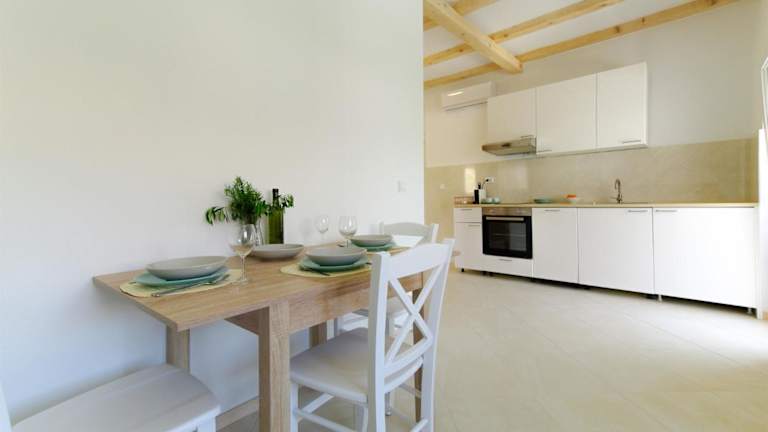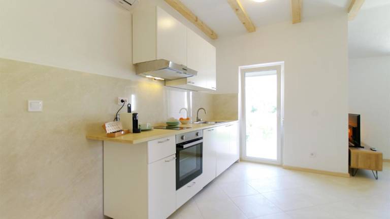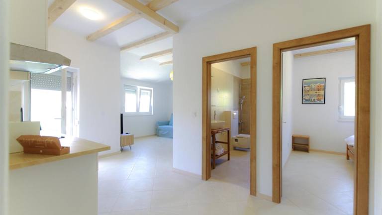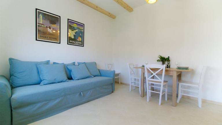 Apartmani Porat Sali bietet Übernachtungsmöglichkeiten mit einem Balkon und kostenlosem Wifi. Die Unterkunft besteht aus 1 Schlafzimmer, einem Wohnzimmer und einer voll ausgestatteten Küche mit Kühlschrank und Kaffeemaschine.