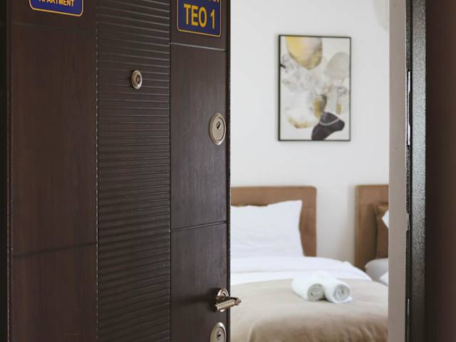 Das Apartmani TEO bietet klimatisierte Unterkünfte mit kostenlosem Wifi und Zugang zu einer Terrasse. Die Unterkunft ist privat geführt, es sind keine Junggesellen- oder Junggesellinnenabschiede erlaubt, und Haustiere sind nicht gestattet. Das Mindestalter für den Check-in beträgt 18 Jahre.