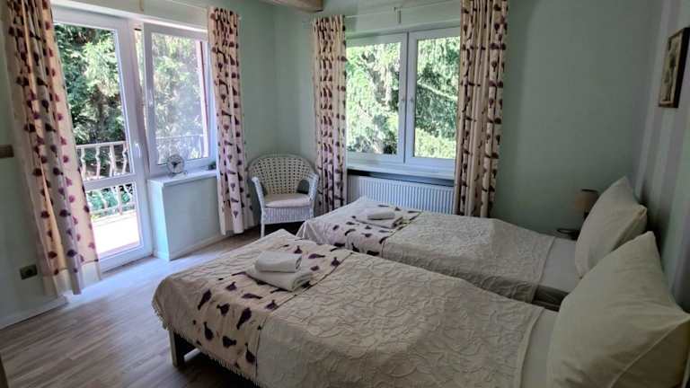 Die Ferienwohnung ist klimatisiert und besteht aus 2 separaten Schlafzimmern sowie einem Badezimmer, das mit kostenlosen Pflegeprodukten und einem Haartrockner ausgestattet ist. Eine Küchenzeile mit Kühlschrank, Herdplatte und Wasserkocher ist ebenfalls vorhanden. Die Zimmer sind als Nichtraucherzimmer konzipiert und bieten eine heimelige Atmosphäre.