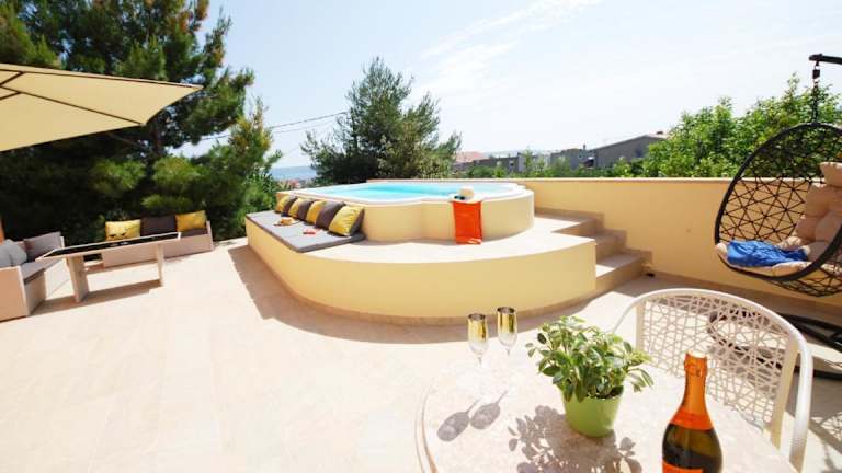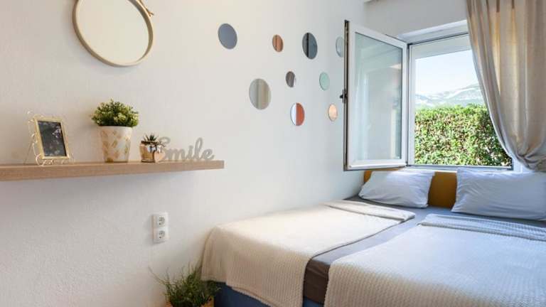 Die Unterkunft befindet sich in Kaštela in der Region Gespanschaft Split-Dalmatien, nur 2 km vom Strand Bijačka Kaštela entfernt. Der Flughafen Split ist nur 3 km entfernt, was eine bequeme Anreise ermöglicht. Die Umgebung lädt zu verschiedenen Aktivitäten wie Wandern ein.