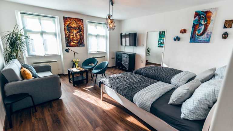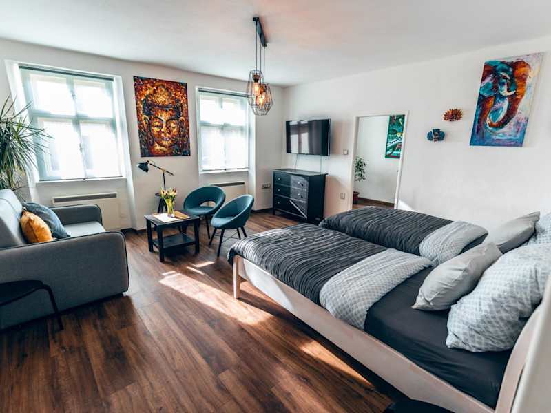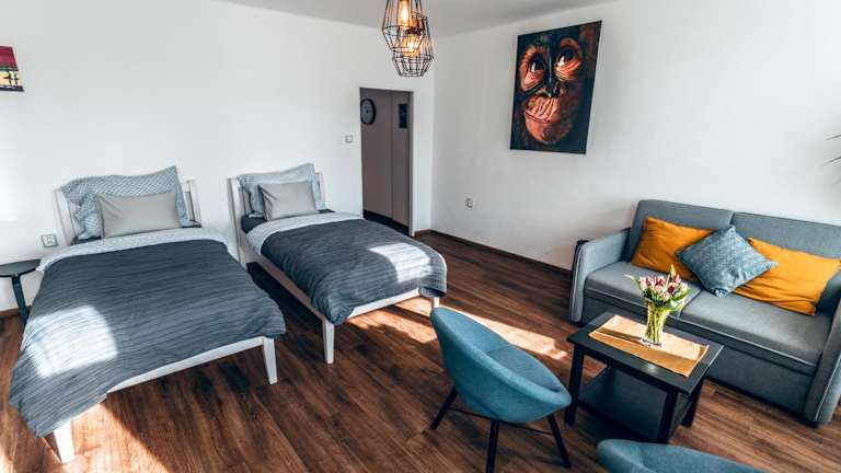 Apartmány CAFÉ-CAFÉ bietet einen schönen Stadtblick und besteht aus Unterkünften zur Selbstversorgung, die mit Parkettböden ausgestattet sind. Diese Unterkunft garantiert einen angenehmen Aufenthalt mit Schallisolierung und Nichtraucherzonen in allen öffentlichen und privaten Bereichen. Check-in ist zwischen 14:00 und 19:00 Uhr möglich; Check-out muss zwischen 08:00 und 10:00 Uhr erfolgen. Hinweise zum Mindestalter besagen, dass Gäste mindestens 18 Jahre alt sein müssen.