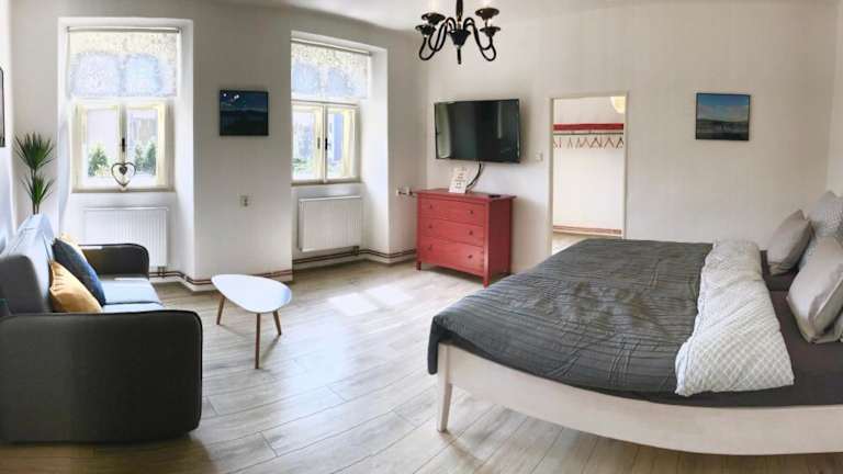 Die Unterkunft Apartmány CAFÉ-CAFÉ befindet sich in Jičín, direkt am Náměstí Svobody. Die Gegend bietet vielfältige Möglichkeiten zum Wandern sowie Velofahren und ist 43 km von der Bushaltestelle Strážné entfernt. Der nächstgelegene Flughafen ist der Flughafen Pardubice, der 75 km entfernt ist.