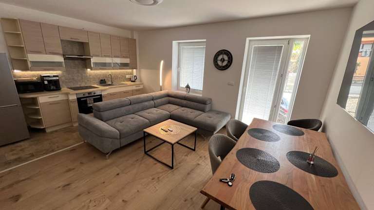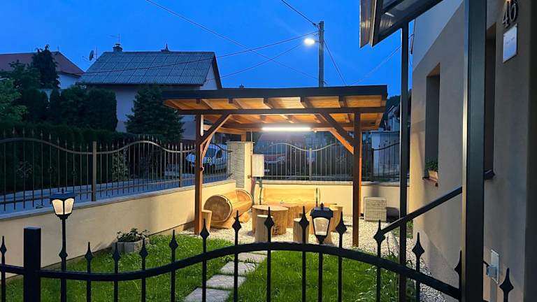 Apartmány De Luxe bietet eine heimelige Unterkunft mit Gartenblick und kostenlosem Wifi. Die Terrasse lädt zum Entspannen im Freien ein.