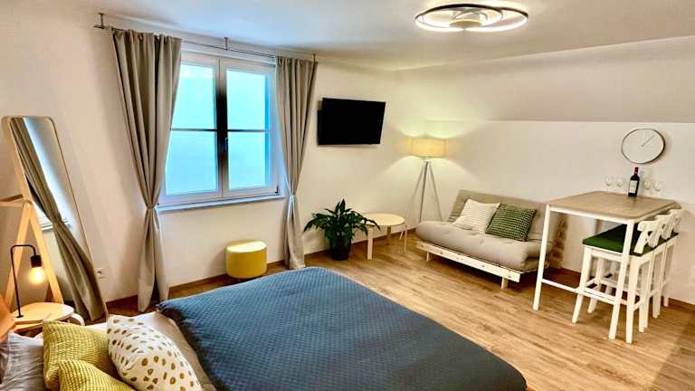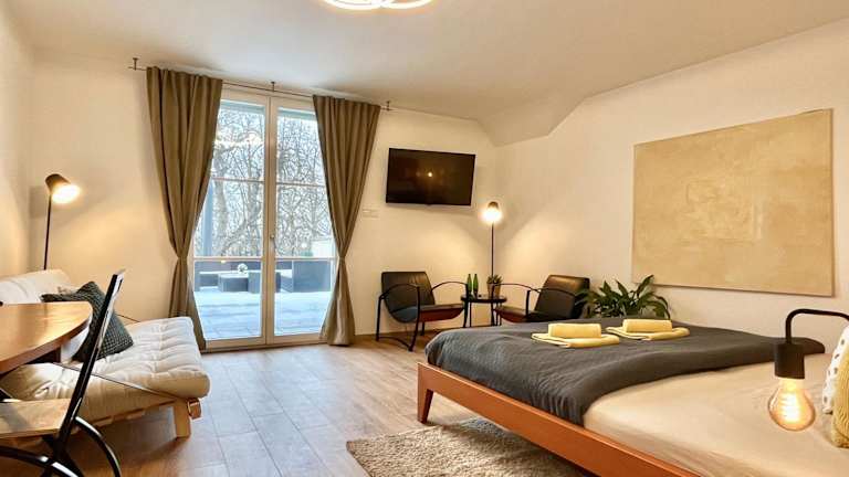 Apartmány Dlouhá bietet eine Unterkunft zur Selbstversorgung mit kostenlosem Wifi und einem Sitzbereich. Die Unterkünfte sind mit Fliesenböden, einem Satelliten-Flachbild-TV sowie einer voll ausgestatteten Küche ausgestattet. Zu den Annehmlichkeiten gehören Kühlschrank, Geschirrspüler, Ofen, Mikrowelle, Kaffeemaschine und Wasserkocher. Eine Terrasse gehört ebenfalls zur Unterkunft.