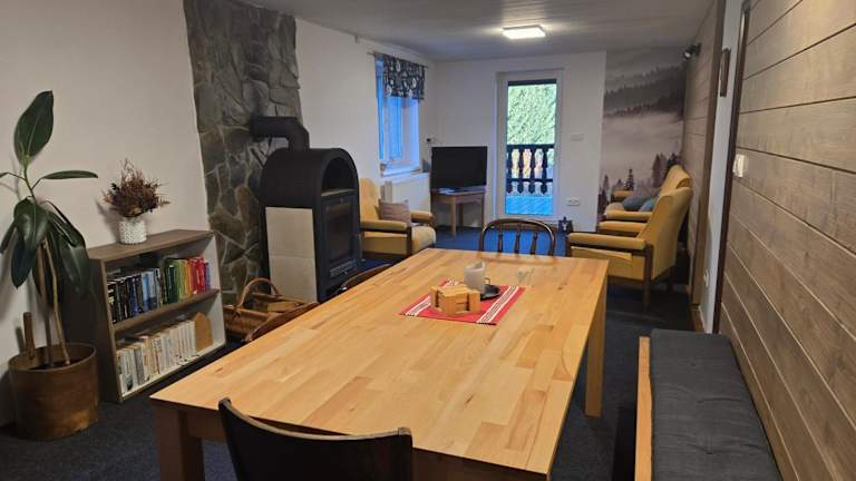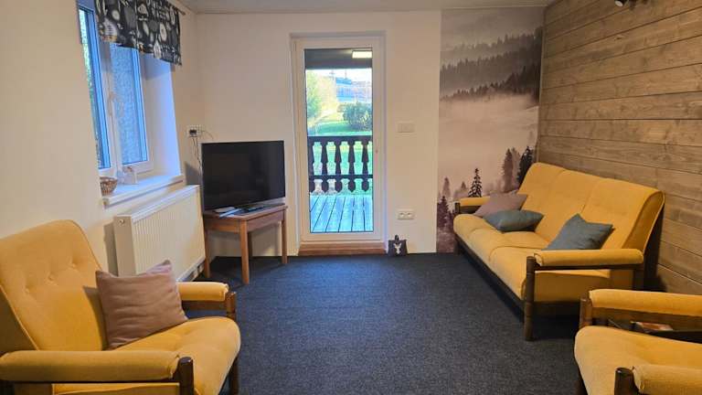 Das Apartment im Apartmány Lebedín verfügt über eine gemütliche Terrasse mit Bergblick. Es bietet Platz für bis zu vier Gäste und verfügt über zwei Schlafzimmer, ein Wohnzimmer und zwei Badezimmer. Die Küche ist gut ausgestattet mit einem Kühlschrank und einem Backofen, so dass die Gäste ihre eigenen Mahlzeiten zubereiten können. Handtücher und Bettwäsche werden gestellt und WLAN ist im gesamten Apartment kostenlos verfügbar.