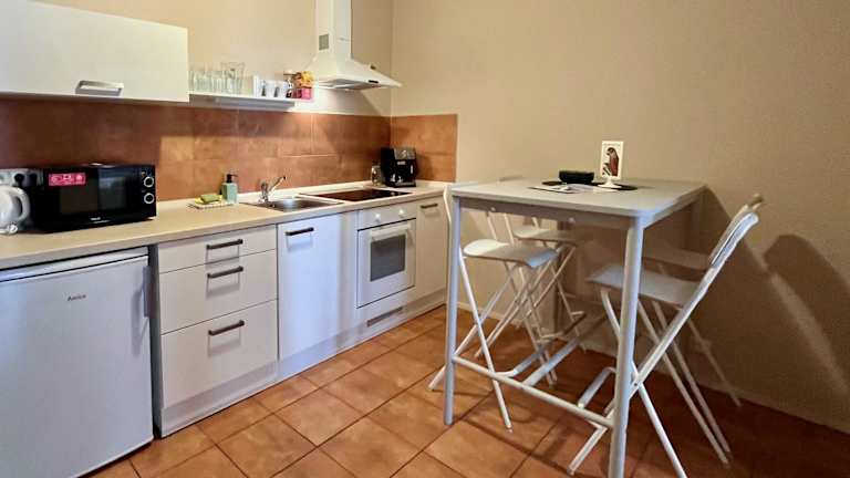 Die Unterkunft verfügt über eine Küche, die mit einem Kühlschrank, einem Ofen, einer Mikrowelle, einer Herdplatte sowie einem Wasserkocher ausgestattet ist. Gäste haben die Möglichkeit, ihre eigenen Mahlzeiten zuzubereiten.