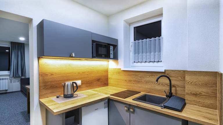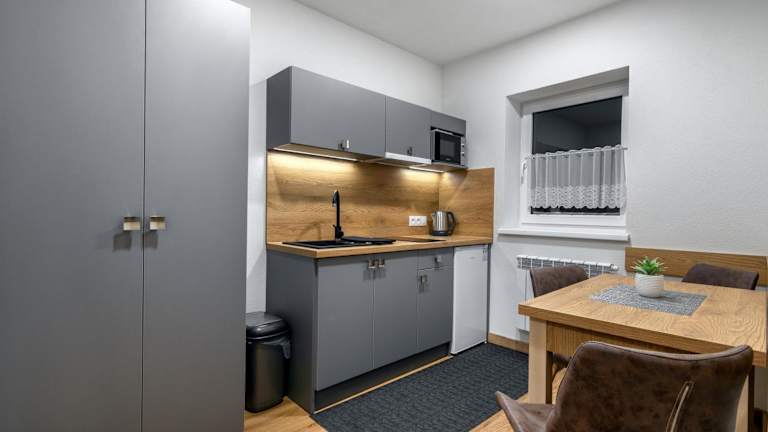 In jeder Wohneinheit der Unterkunft gibt es eine voll ausgestattete Küchenzeile mit einem Esstisch, einen Flachbild-TV mit Satellitenkanälen und ein eigenes Badezimmer mit Dusche und Haartrockner. Zur Ausstattung gehören ausserdem ein Kühlschrank, eine Mikrowelle sowie ein Wasserkocher.