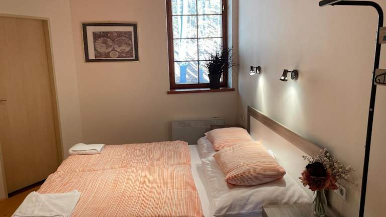 Das Apartmány Telnice - Medorhof bietet eine gemütliche Atmosphäre und ist ideal für Gäste, die die Natur und Aktivitäten im Freien schätzen. Kostenloses Wifi und eine private Parkiermöglichkeit stehen den Gästen zur Verfügung, was den Aufenthalt zusätzlich erleichtert. Die Terrasse lädt zum Entspannen ein, während die Gemeinschaftslounge ein Ort der Begegnung ist.