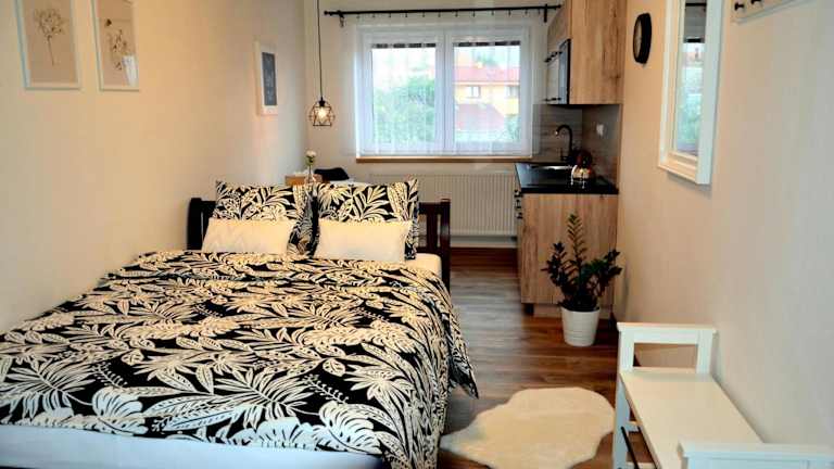 Die Unterkunft Apartmány u Kotačků befindet sich in Veverské Knínice, etwa 21 km vom Messegelände Brünn entfernt. Die Gegend bietet eine ruhige Umgebung und ist ideal für Gäste, die die Natur geniessen möchten. Sehenswürdigkeiten wie die Festung Spielberg und das Automotodrom Brno sind in der Nähe.