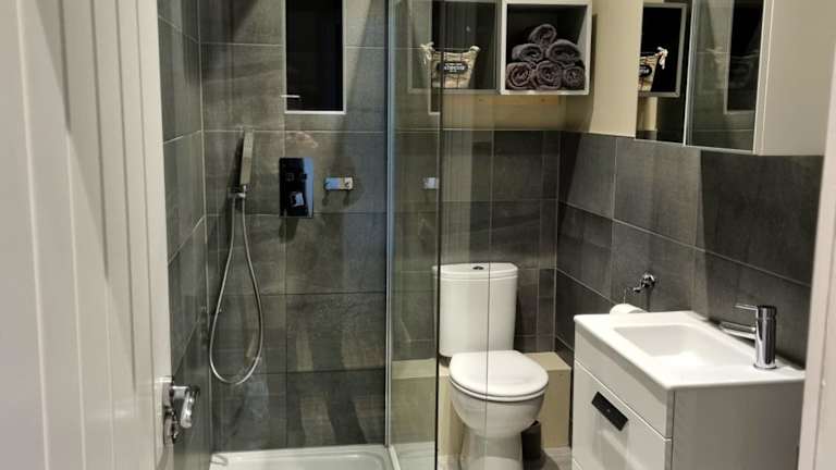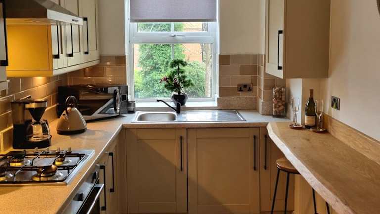 Die Ferienwohnung bietet ein Schlafzimmer, ein Wohnzimmer, eine voll ausgestattete Küche mit Kühlschrank und Wasserkocher sowie ein Badezimmer mit Dusche und kostenlosen Pflegeprodukten. Handtücher und Bettwäsche werden bereitgestellt.