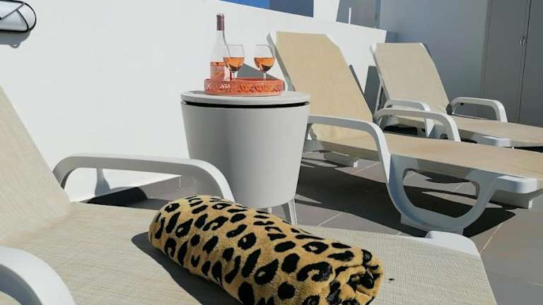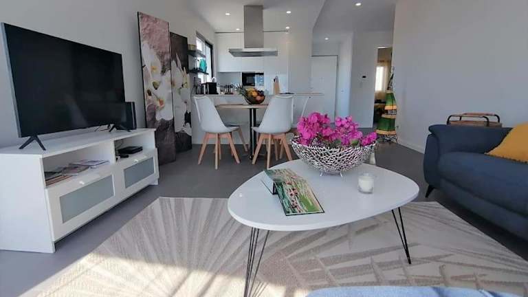 Das Apartment bietet Übernachtungsmöglichkeiten in einem modernen und hellen Ambiente. Es verfügt über zwei Schlafzimmer, ein Wohnzimmer mit Flachbild-TV und eine gut ausgestattete Küche. Ein eigener Pool sowie eine Terrasse runden das Angebot ab. Kostenloses WLAN und Klimaanlage sorgen für die nötige Bequemlichkeit während Ihres Aufenthalts.