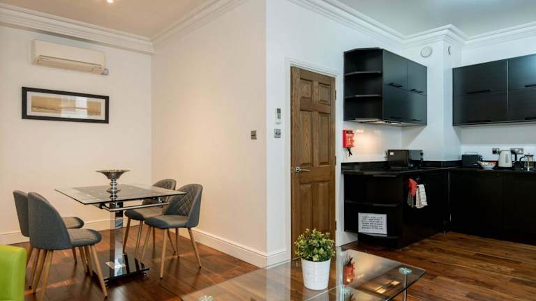 Das Apartment ist mit einem Schlafzimmer ausgestattet und bietet eine voll ausgestattete Küche mit Kühlschrank und Geschirrspüler. Zudem steht ein Flachbild-TV sowie ein Sitzbereich zur Verfügung. Das Badezimmer ist entweder mit einer Badewanne oder einer Dusche ausgestattet. Handtücher und Bettwäsche werden bereitgestellt.