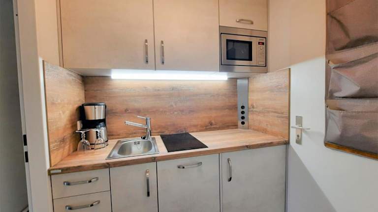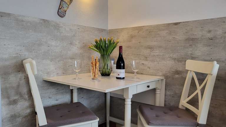 Das Apartment ist ausgestattet mit einem gemütlichen Wohnzimmer sowie einer voll ausgestatteten Küche, die über einen Kühlschrank und einen Geschirrspüler verfügt. Zur Unterhaltung stehen ein TV und ein Blu-ray-Player zur Verfügung.