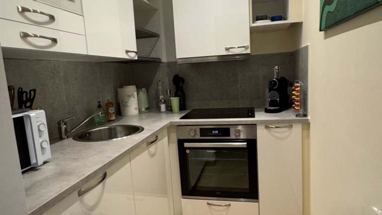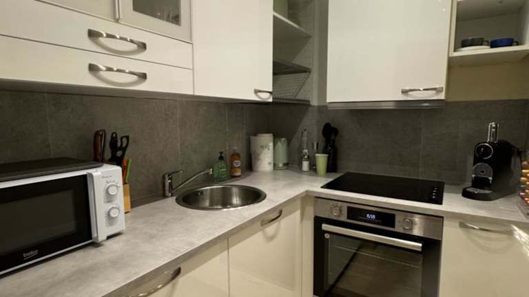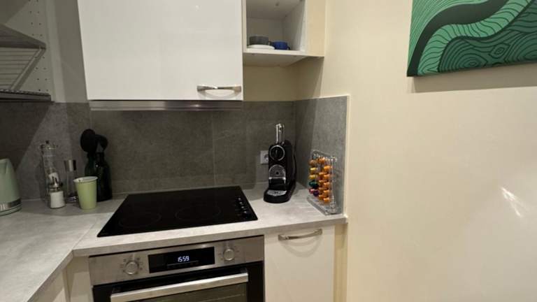 Die Ferienwohnung verfügt über ein Schlafzimmer und ein Wohnzimmer. Die voll ausgestattete Küche umfasst einen Kühlschrank und einen Ofen, während das Badezimmer mit einem Haartrockner ausgestattet ist. Handtücher und Bettwäsche werden bereitgestellt.