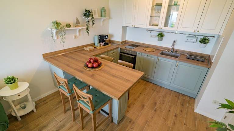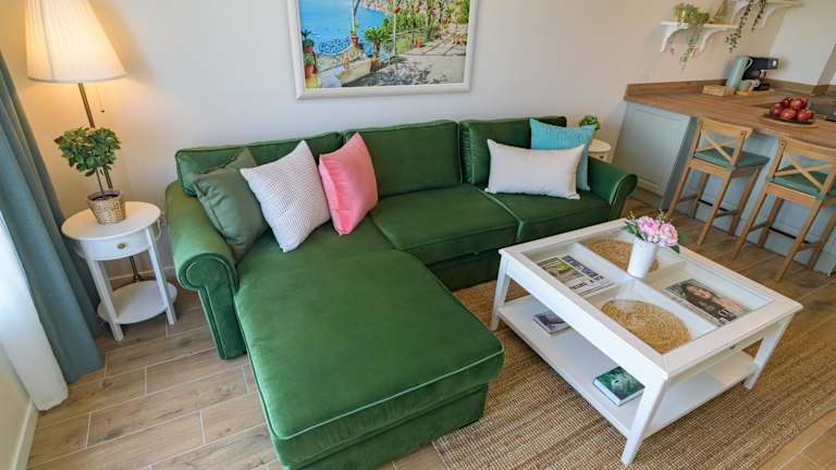 Die Ferienwohnung besteht aus 1 Schlafzimmer, einem Wohnzimmer und einer voll ausgestatteten Küche mit Kühlschrank und Kaffeemaschine. Das Badezimmer ist mit einem Bidet und einer Dusche ausgestattet. Zudem stehen Handtücher und Bettwäsche zur Verfügung.