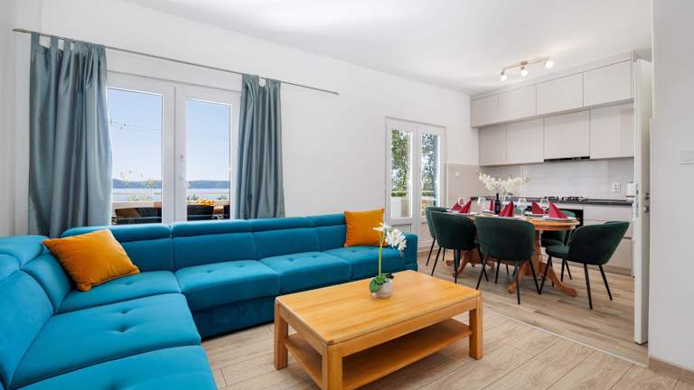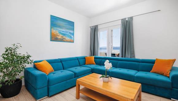 Das Apartment A6 sea view bietet klimatisierte Übernachtungsmöglichkeiten mit einem Balkon und kostenlosem Wifi. Die Unterkunft überzeugt durch eine Terrasse und ist ausgestattet mit 3 Schlafzimmern, einem Wohnzimmer, einem Flachbild-TV sowie einer gut ausgestatteten Küche. Die Ferienwohnung stellt Handtücher und Bettwäsche zur Verfügung und ist eine Nichtraucherunterkunft.
