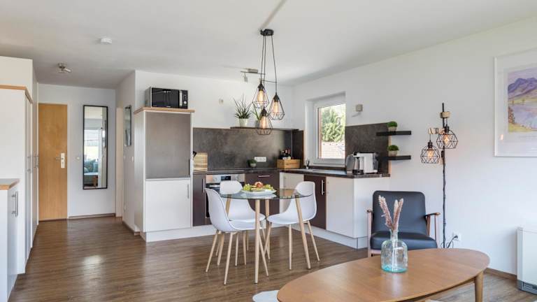 Die Ferienwohnung bietet 1 Schlafzimmer, ein Wohnzimmer sowie eine gut ausgestattete Küche mit Kühlschrank und Geschirrspüler. Ein Flachbild-TV und ein Badezimmer mit Dusche stehen ebenfalls zur Verfügung. Handtücher sowie Bettwäsche werden für die Gäste bereitgestellt.