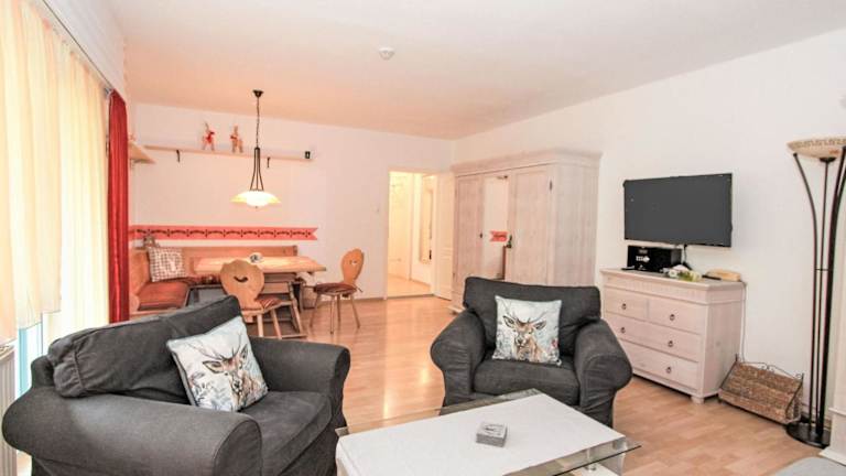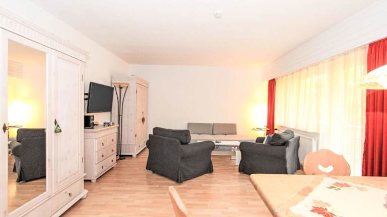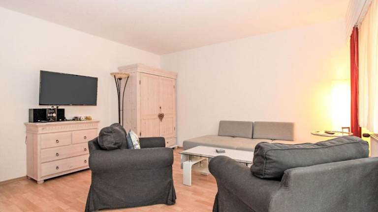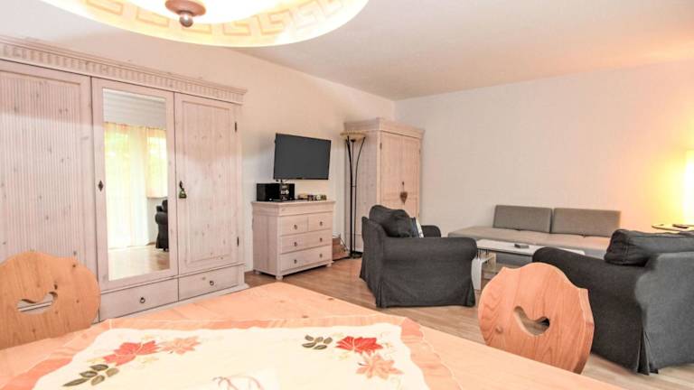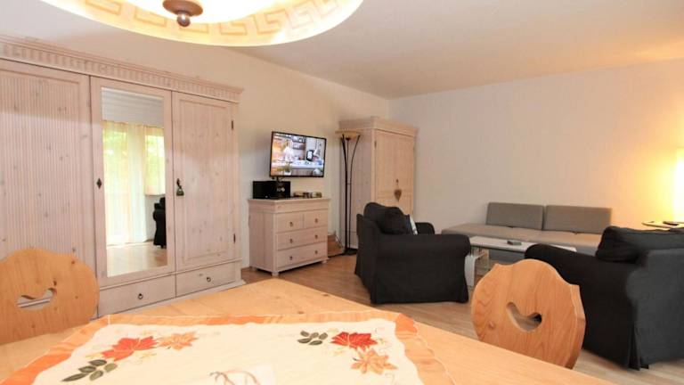 Die Ferienwohnung verfügt über ein Schlafzimmer, ein Wohnzimmer mit Kabel-TV, eine voll ausgestattete Küche mit Kühlschrank, Ofen und Geschirrspüler sowie ein Badezimmer mit Badewanne. Ein Babybett kann gegen Aufpreis zur Verfügung gestellt werden.