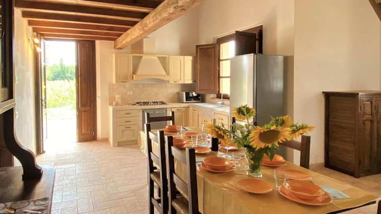Die Ferienwohnung umfasst 3 Schlafzimmer und eine voll ausgestattete Küche inklusive Kühlschrank und Geschirrspüler. Zudem steht ein Badezimmer mit Bidet und Dusche zur Verfügung. Für die jüngsten Gäste ist ein Babybett kostenfrei erhältlich, und weitere Extrabeds sind auf Anfrage verfügbar.