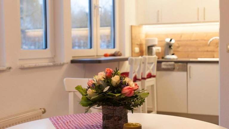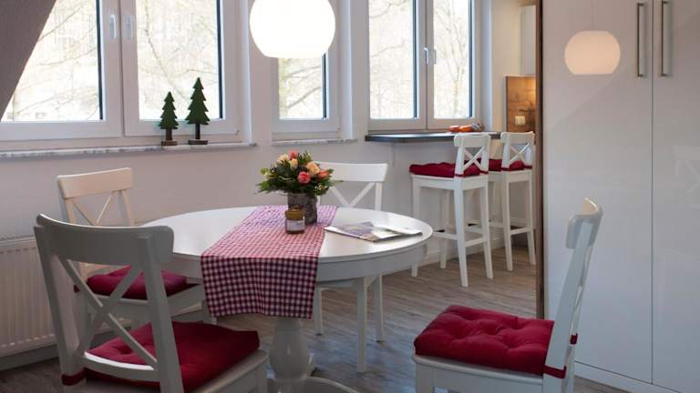 Die Ferienwohnung besteht aus einem Schlafzimmer und einem Wohnzimmer. Sie verfügt über eine voll ausgestattete Küche mit einem Kühlschrank und einer Kaffeemaschine, sowie über ein Badezimmer mit Dusche und Haartrockner. Zur Unterhaltung stehen ein Flachbild-TV mit Satellitenkanälen, ein DVD-Player und ein CD-Player zur Verfügung.