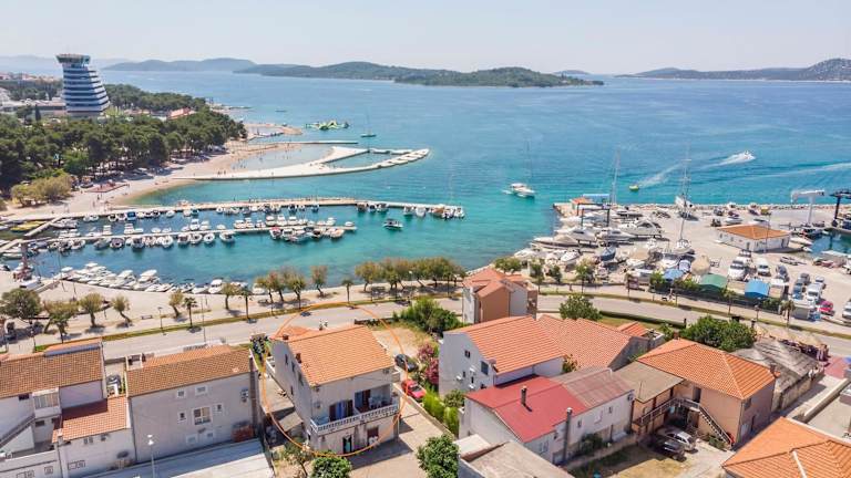 Die Unterkunft Apartment and Rooms Artina befindet sich in Vodice, einer Stadt in der Region Gespanschaft Šibenik-Knin. In der Nähe liegen die Strände Male Vrulje und Hangar, während das Imperial Beach nur 800 m entfernt ist. Der Flughafen Zadar ist 64 km von der Unterkunft entfernt.