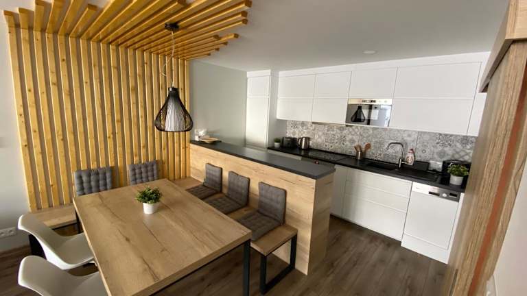 Die Ferienwohnung umfasst ein Schlafzimmer, ein Wohnzimmer mit Flachbild-TV sowie eine gut ausgestattete Küche mit Kühlschrank und Geschirrspüler. Zudem stehen ein Badezimmer mit Dusche zur Verfügung. Auf Wunsch können Handtücher und Bettwäsche gegen Aufpreis bereitgestellt werden.