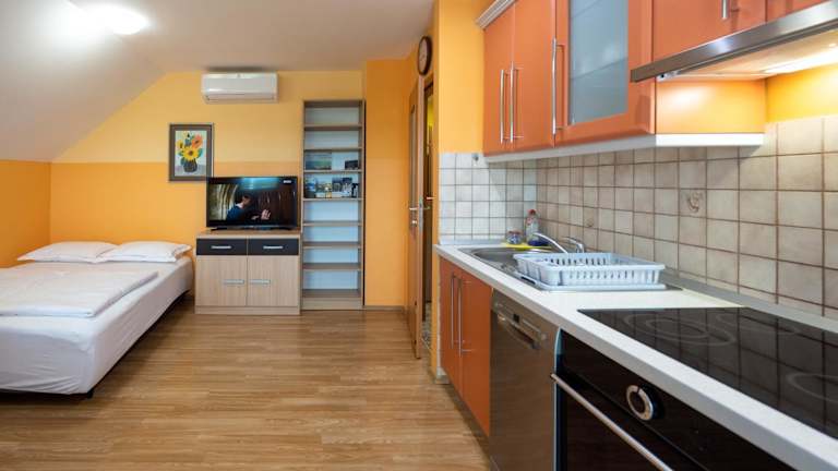Die Wohneinheiten sind voll ausgestattet und verfügen über eine Küche mit einem Esstisch, einen Flachbild-TV mit Satellitenkanälen und ein eigenes Badezimmer mit Dusche und kostenlosen Pflegeprodukten. Ausstattungen wie ein Kühlschrank, Geschirrspüler, Ofen, Kaffeemaschine sowie Wasserkocher sind vorhanden.