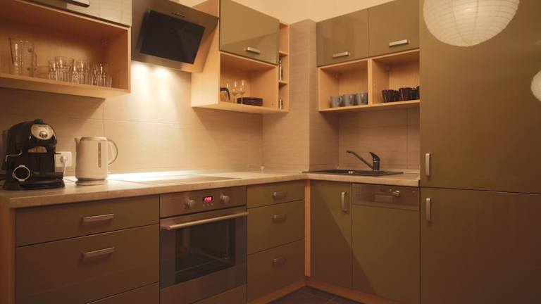 Das Apartment bietet ein Sofa, einen TV und einen CD-Player. Die Küchenzeile ist mit einer Spülmaschine und einem Backofen ausgestattet. Zur Ausstattung gehört zudem ein eigenes Bad mit einer Dusche.