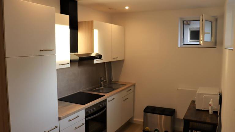 Die Unterkunft verfügt über eine voll ausgestattete Küche mit Kühlschrank und Ofen, in der sich die Gäste selber versorgen können.