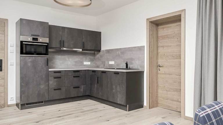 Das Apartment besteht aus 2 Schlafzimmern, einem Wohnzimmer sowie einer voll ausgestatteten Küche mit Kühlschrank und Kaffeemaschine. Das Badezimmer ist mit einer Dusche und einem Haartrockner ausgestattet. Zur Unterhaltung gibt es einen TV mit Satellitenkanälen.