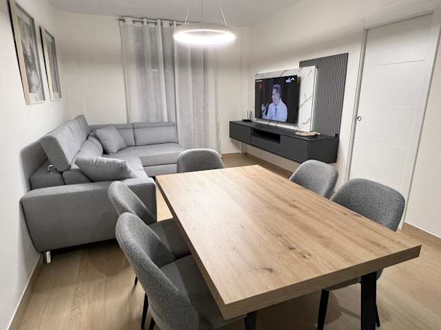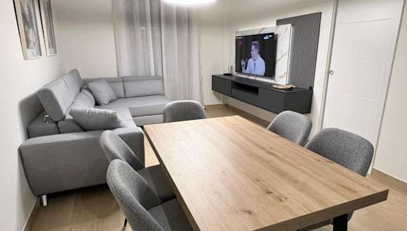 Die Ferienwohnung verfügt über 3 Schlafzimmer und eine Küche, die mit einem Kühlschrank und einem Geschirrspüler ausgestattet ist. Sie beinhaltet 2 Badezimmer mit Dusche, Haartrockner und Waschmaschine. Handtücher sowie Bettwäsche werden bereitgestellt. Zusätzliche Ausstattungsmerkmale sind schallisolierte Zimmer, Klimaanlage sowie Heizungs- und Sicherheitsmaßnahmen.