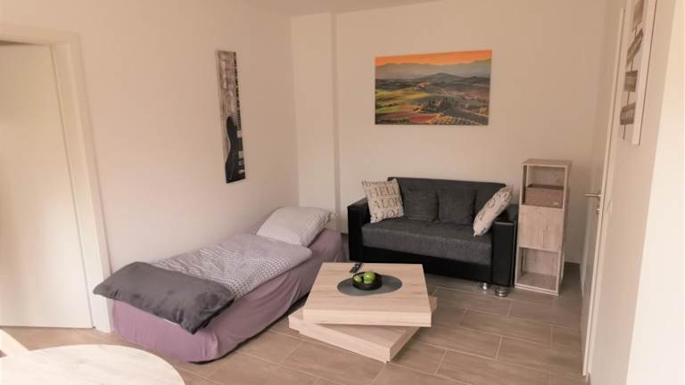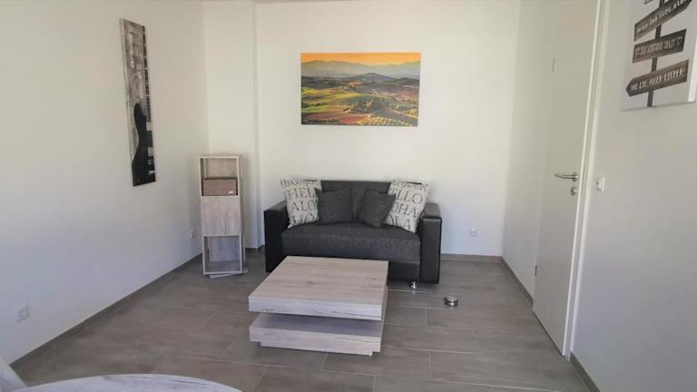 Das Apartment aussen Pfui innen Hui bietet eine einladende Unterkunft mit einem gemütlichen Sitzbereich. Die Unterkunft überzeugt durch ihre praktische Ausstattung und die Möglichkeit, einen angenehmen Aufenthalt zu verbringen.