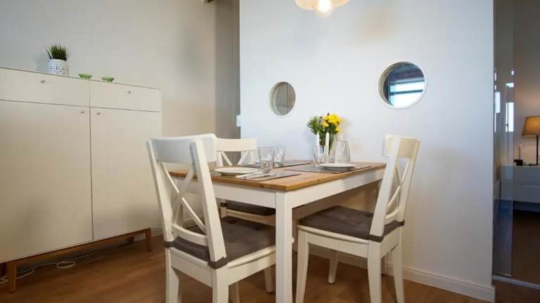 Die Ferienwohnung umfasst 2 Schlafzimmer, eine voll ausgestattete Küchenzeile und ein Badezimmer. Ein Flachbild-TV sorgt für Unterhaltung während des Aufenthalts.