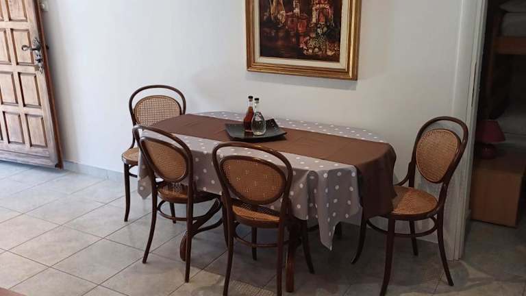 Die Ferienwohnung ist mit einer voll ausgestatteten Küche ausgestattet, die einen Kühlschrank und eine Kaffeemaschine beinhaltet. Die Unterkunft bietet keine spezifischen Verpflegungsmöglichkeiten an, jedoch können Gäste ihre Mahlzeiten selbst zubereiten.