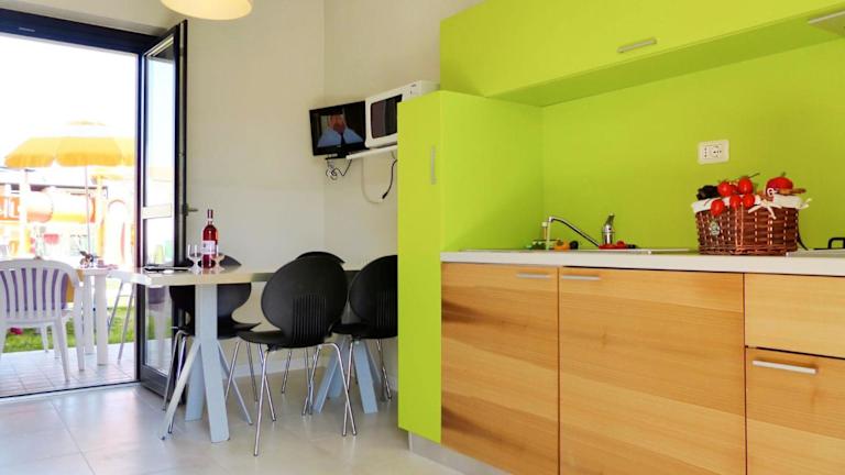 Die Ferienwohnung bietet einen Balkon mit Poolblick sowie 2 Schlafzimmer, ein Wohnzimmer und einen Satelliten-TV. Die gut ausgestattete Küche ermöglicht eine eigenständige Zubereitung der Mahlzeiten. Das Badezimmer ist mit einem Bidet und einer Dusche ausgestattet.